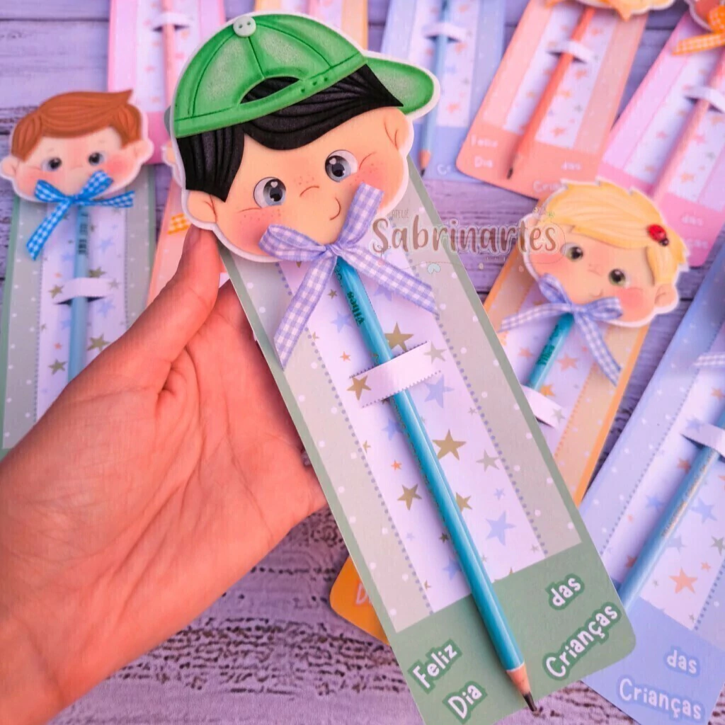 • 10 moldes de ponteiras de crianças, sendo 5 meninas e 5 meninos, ideais para o Dia das Crianças e outras ocasiões + Arte para lápis Dia das crianças (Brinde)